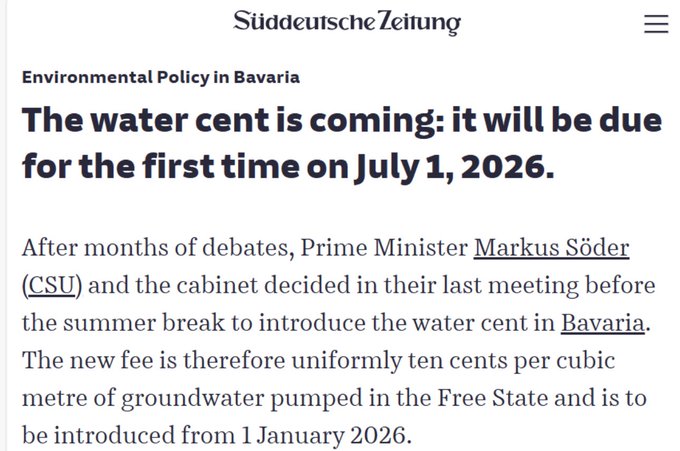 Prime Minister Markus Söder emphasized the importance of groundwater to Bavaria’s economy and environment, referring to it as “the state’s blue gold.” He highlighted concerns over increasing water scarcity driven by climate change and intensive usage, which threaten both agricultural productivity and ecological balance. The new tax is intended to incentivize more efficient water use and funding for conservation projects.