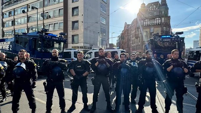 In Frankfurt am Main, police employed water cannons to safeguard a Jewish cemetery amid protests by anti-Israeli demonstrators. The demonstration, titled “United4Gaza — Stop the genocide now!”, drew approximately 11,000 participants and took place yesterday.